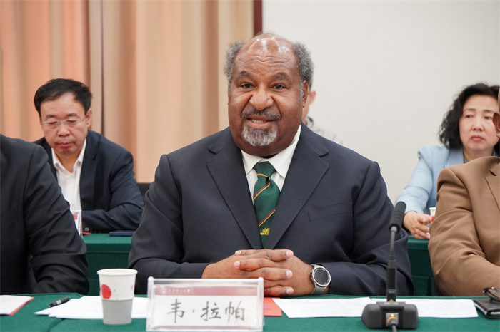 韦·拉帕省长对我校的热情接待表示感谢,对我校的办学历程给予高度评价。他表示,深化各领域合作是两国领导人达成的重要共识。西高地省有意在能源矿产、教育、文化等领域与我省及我校深入合作交流,加强学术、科研、技术人员往来,共同促进教育科技进步。他还特别强调,巴新和中国两国的友好交往源远流长,华人是两国的强有力人文纽带,在巴新国家建设中发挥着重要作用。希望双方凝聚资源与技术力量,共同推动各项事业发展。